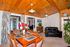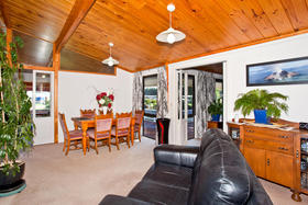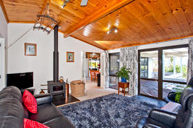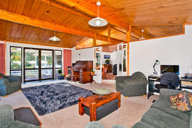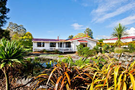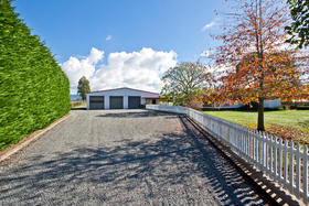 Tucked away down the driveway, with a well maintained hedge and mature trees for shelter and seclusion, the immaculately presented home nestles on large acreage that is free draining and has a flat contour. Ideally set up for lifestyle or home business, the very appealing residence offers ample room for family living. There are three double bedrooms, two bathrooms (including an ensuite), two lounges, plus a sleepout. Both the laundry and toilet are separate. Solar hot water and wet back are among the array of benefits.