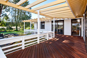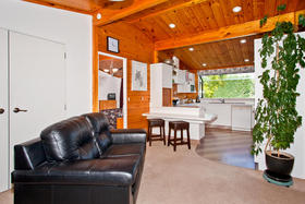 Timber ceilings complement the fresh neutral decor. Bright, modern, light filled interiors are enhanced by new light fittings and drapes. Designed for easy entertaining, the home's northern entranceway opens to the garden and a covered all-weather alfresco area, perfect for barbeques and social get-togethers.