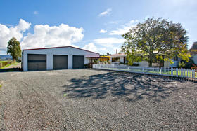 The series of outbuildings include a three bay garage, four bay implement shed and a selection of quality farm buildings. The sheds are tidily positioned behind the house, out of sight. The large three bay garage has a high stud and sleepout, making it suitable as a workshop.