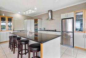 • The kitchen area features composite granite bench tops, good workable spaces, open plan dining area and family room.
