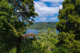 Lake Okareka lies some 12 km south-east of the thermal resort and mountain biking center of Rotorua and its airport. It is off the main tourist routes and the settlement possesses a special serenity and quietness. As well as being a superb spot for anglers and water sport enthusiasts, the areas forestry, reserves and walking tracks offer a diverse range of recreational and adventure activities. A timber boardwalk runs alongside the southern edge of the lake, where you can walk through native trees beside wetlands full of aquatic birds. Glow-worm caves are within kayak distance. Imagine kayaks or a sailboat on the beach ready to enjoy after a swim. Horses roam on nearby farmland with deer in the forest reserves.