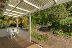 At the front of the house is a private deck complete with an extendable awning for shade in summer months. At the back, there are many established fruit trees on the various levels of the section, with a good amount of lawn area and flower gardens. The plantings afford privacy from the neighbours with established trees.