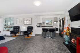 Splashes of colour from well-planted gardens accentuate the feel-good factor of the home whose ambient interiors embrace open plan living, two bedrooms and a study, or third bedroom option. Kitchen and bathroom are modern, well-appointed spaces and creature comforts include a living flame gas fire. A good-sized garage is adjoined by a separate storeroom and a double carport, ensuring plenty of parking and storage.
