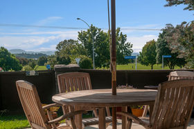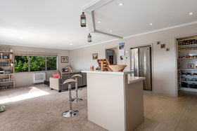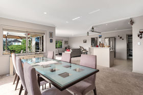 The spaciousness of the living area will impress as soon as you step through the front door, a separate lounge opens to the large dining area and open plan kitchen and family room, the kitchen is generous in size with a walk in pantry, plenty of cupboards, island bench, plumbed double door fridge which stays, all opening out to a private patio with views over the park and sports fields with a peep of the harbour, there is plenty to see.