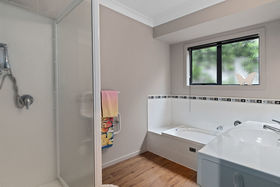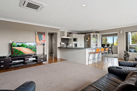 A nice entry will lead you into the separate lounge on the left capturing the evening sun and Kaimai views. The dining area is between the lounge and open plan kitchen family room with a ranch slider leading to the enclosed patio. A family friendly breakfast bar for the morning rush overlooks the kitchen which is well equipped with all the essential appliances and corner pantry.