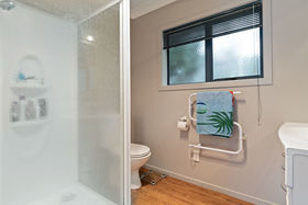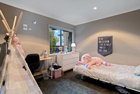 The property is entered via a private right of way driveway, entering to the left of the driveway is the 2nd double garage, a garden shed down the side for extra storage. A gate takes you to the front door where the rest of the section is fenced off, there is a handy access way down to the street below, the location is so handy to the skate path and playground for the older children.