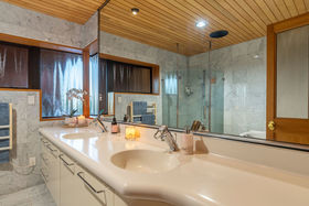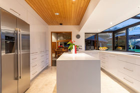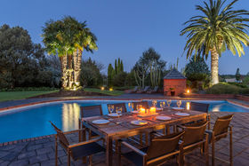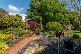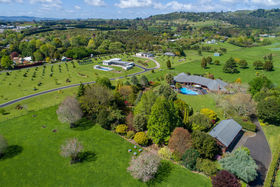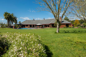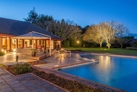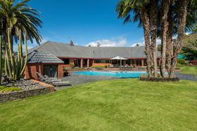 The executive-style home is set in its own private grounds with a large swimming pool and spa, heated by a natural hot water bore and surrounded by tiled patios and manicured lawns which lead to a hidden garden with pond, waterfall and stunning specimen trees. The home is approached through security gates up a curving hedged and shrub bordered drive to arrive at the front entrance, triple garage and ample parking.