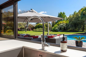 The house is compartmentalized into several living areas, making it perfect for flexible use, the layout is superb for a family or perhaps as an upmarket home stay or lodge. The large master suite is situated at one end - where you can walk out French doors, across a covered patio and into the spa beside the inground pool. Children or guests share a wing at the other end of the home - three bedrooms, and two bathrooms, one of which adjoins a large games room.
