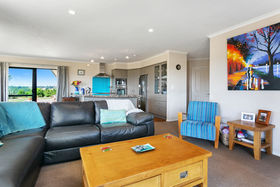 Approximately 13 years old and situated well back from the road on top of a hill, the home has four bedrooms (master with ensuite and walk in wardrobe), large open plan kitchen/dining/family room leading to a sunny outdoor living area. The home also has a separate lounge, a modern bathroom, laundry and large double car internal access garaging. The spacious family home is fully insulated, double glazed and has a Heat Pump plus a Log Fire for all year round comfort.