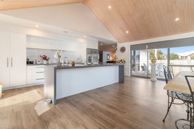 Large feature windows bathe the perfectly proportioned living areas in natural light, while the super high, white washed tongue and groove ceilings, really grab your attention and assure you this is no ordinary home. Three spacious bedrooms, two sparkling bathrooms and a top notch kitchen will keep the whole family happy. A cool office/media room with surround sound controller, allows you to access your favourite tunes around the house, while the laundry area and lots of built in storage, make this superb home both practical and eye-catching.