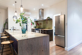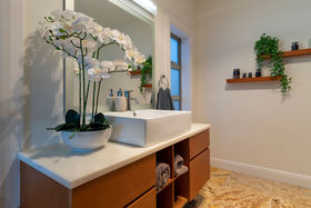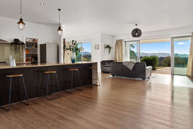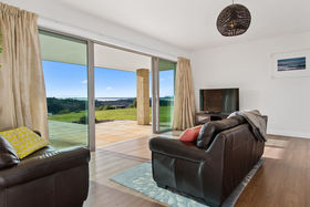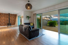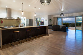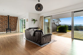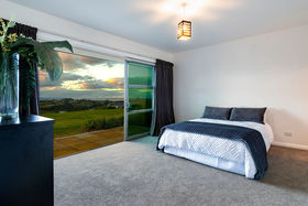 After driving past sheltered, tree lined grassy expanses it is a surprise to find the home commanding such amazing views. The sandstone patios that span both sides of the home extend towards the panorama. Imagine entertaining outside while the sun sets over the Kaimai ranges, the Coromandel ranges fade into the distance and the harbour and ocean sparkles beyond. The generous Hinuera stone home has expansive open plan living which can be 'zoned' to suit your lifestyle. The master suite is at one end of the home, family bedrooms, office or fourth bedroom and bathroom (plus huge laundry) at the other.