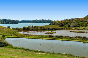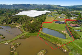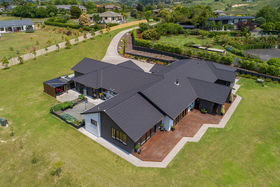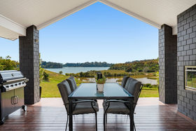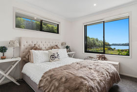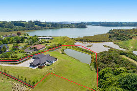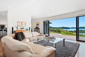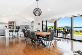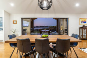 Share your concealed 1.1580 hectares with birdlife attracted by the wetlands below. Relish peace and privacy as you savour the warmth of the northerly aspect and the width of the estuary outlook. Embrace life in an expansive four-year-old home which spreads its living areas, master suite, office and guest suite along the views. The bright blue front door opens to a panorama enhanced by the light and airiness of peaked ceilinged, open plan living where white walls offset durable bamboo flooring. Stacking doors spill you out to covered and open deck.