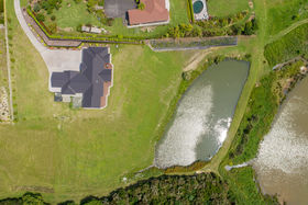 The property is set back from the cul de sac end of the street, the drive scooping to ample parking space, where landscaped retaining adds interest. Lawns sweep from the home to the large pond on its lower fringe where yet another pond and the estuary provide views with variety.
