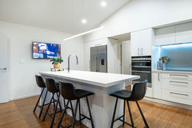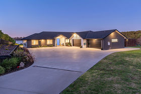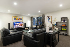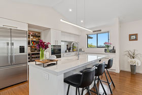 It's an entertainer's delight with gas fireplaces inside and out, along with ducted air conditioning which keeps the house warm in winter and cool in summer. An attractive and practical big butler's pantry with copious open shelving, smooth stone benches and double sink on the kitchen's social side. A separate lounge invites retreating to enjoy media or afternoon sunshine. The master suite is at the morning sun end of the home, the other bedrooms and office at the west end.