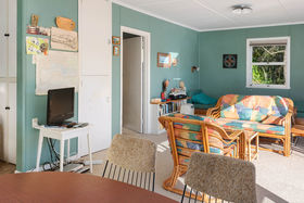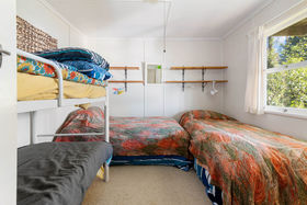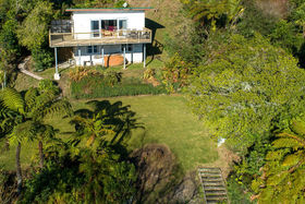 The two-storey bach has open plan living, a double bedroom and bathroom at first level. A spacious deck off the lounge is a picturesque spot for alfresco relaxation and entertaining. A second double bedroom and the laundry feature at ground level.