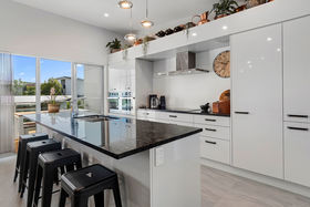 Three bedrooms are complemented by well-appointed bathrooms on each level and a gorgeous, sun-drenched living area. A modern spacious kitchen with granite bench tops and quality cabinetry, even a plumbed double door fridge. There is plenty of storage and a carpeted 2 car garage.