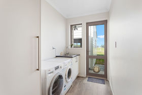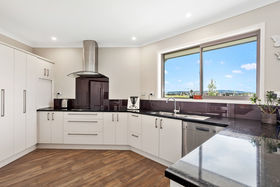 There is a third, separate toilet next to the large internal access double garage, plus a separate laundry. There is a roomy office at this end of the home. Adjacent to the home is a new 52 sq.mtre. Versatile Garage. All vehicle access and turn around areas are finished in concrete. Outdoors, the grounds are establishing and include a range of fruit trees plus Avocado Orchard.