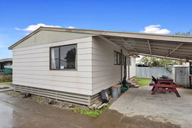 The 80m floor plan features open-plan kitchen, living and dining, 3 bedrooms, reasonable sized bathroom and a seperate toilet. The outside carport, sheltered deck and the full fenced boundary are great additions to the site. Ready your tools and paintbrush, there's plenty of scope to add your personal touch. The ideas could be endless.