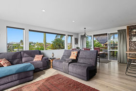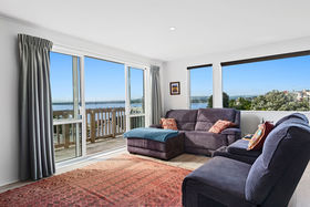 From the moment you step into the open plan living area you are captivated by the large picture window which frames the expansive water views perfectly. Seamless indoor/outdoor flow on both sides expand the living and give you a real sense of space. The main deck is covered and is the perfect place for friends and family to gather and enjoy the quintessential kiwi BBQ while soaking up those stunning views.