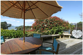 Spacious 5 bedroom family home with truly spectacular views. Delightful harbourside location - a short walk at the bottom of the section brings you to the boat ramp and wharf.