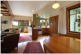 This 1930's character bungalow was extended in 2003, blending the old and new with real style and panache. The home has a large master bedroom with ensuite and there are 3 other bedrooms or 2 bedrooms and 2 living areas. 2.72ha of land is a mixture of grazing and avocados. The gardens have featured in the New Zealand Gardeners Magazine. Large sheds and studio complete the picture.