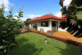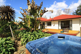 Playful, sunny, boldly splashed with colour. This artistic three bedroom home on a generous 961m² is waiting for someone special. You will adore the cool California feel this home exudes as you stroll around its creative walkway to the surprise waiting for you in the beautiful landscaped private garden. A lavish deck stretches along the north facing rear of the house, and a pizza oven, and bubbly spa nestled in the lush garden complete this easy living picture. This is the home you never thought you would find.