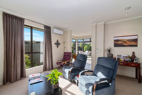 Featuring 3 bedrooms, 2 bathrooms, clever open plan living, kitchen, dining and sunny sitting spaces with internal access double garaging, its ideal for a retired or busy professional couple. It boasts quality chattels throughout, has ample off-street parking for the caravan or motor home and is of solid brick construction to last for many years to come.