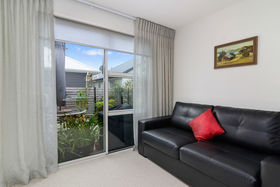 This modern town house is a study in simplicity and contemporary comfort. Its fresh crisp look, tasteful landscaping and well-proportioned interiors deliver immense lifestyle appeal and superb liveability. Modern finishing details give the home an air of easy glamour while its flowing layout encourages life outdoors in picturesque surrounds. The light-filled lounge area, which sits under a cathedral ceiling, is flanked by full-height double glazing and doors that open to nature. A living flame gas fire creates a toasty atmosphere over winter and the heat pump ensures year-round comfort. The embracing open plan domain incorporates a sleek kitchen and meals area. Bedrooms are comfortable nests served by a tiled bathroom that is all style. The master retreat has an ensuite. There is internal access double garaging and driveway parking. Built in 2017, the home is wrapped in ceiling, wall and underfloor insulation, and has zoned underfloor heating. This enticing, centrally located property is the perfect oasis for a relaxed lock-up-and-leave lifestyle. It engenders minimal maintenance and allows you to live a life of leisure.