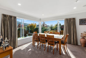 Cavity sliders subtly separate dining and living spaces which deliver optimum comfort. The formal dining area gazes out to the mountain in a spectacular way. A fully tiled en-suite supports the master bedroom while the cares of the day can be soaked away in the corner spa bath in the family bathroom.