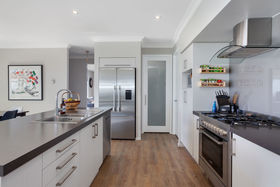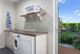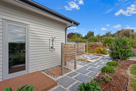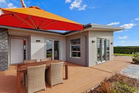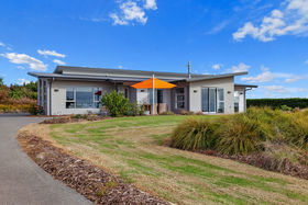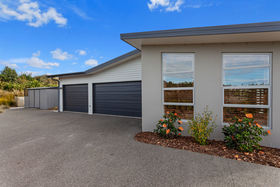 Built in 2013, the north facing open plan living and dining area centres around a well-planned kitchen, complete with island bench, gas cooking and walk-in scullery. From this central hub the separate lounge and triple garage (with third toilet) can be accessed. Interior comfort is created with a low-emission wood fire, heat pump and heat transfer system. The sunny master bedroom includes an ensuite and walk-in wardrobe, and the master bathroom features a stand-alone bath.