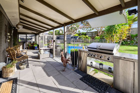 Comprising four bedrooms in total, a comfortable guest suite is located on the ground floor with its own en-suite. Also, on this level is a fantastic entertaining lounge/bar, powder room and office as well as a cozy outdoor area, complete with outdoor fire. This is the perfect escape for teenagers or adults alike. Upstairs is the hub of the home with a further three double bedrooms, main bathroom and separate water closet. The open plan kitchen has been stylishly re modelled and is an entertainers delight with a feature serving bench to enjoy snacks and drinks with friends. The dining and lounge flow out to an attractive entertaining area complete with large inground pool which has recently been re painted and retiled. The fully fenced back yard provides a spacious safe place for children and pets to play.