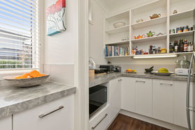 Inside, the home is light and sun-filled and whilst not a huge home, it has been designed with clever use of space. The kitchen with walk-in pantry is fabulous. The open plan dining and family rooms open to the patios where a canvas awning provides cover when you need shelter from the sun. The garden is everything a suburban outdoor space should be - small enough to offer a quiet space for relaxation and rejuvenation but large enough to enjoy the company of friends on a beautiful summer evening. Immaculately presented, the owners passion for their garden has resulted in a perfect combination of maintenance free outdoor living, plus interesting planting which invites you to sit and relax, read a book under the pergola or treat yourself to the abundance of fruit that will keep your fruit bowl colourful all year round. Much of the property is fenced, offering a safe haven for your pets and young ones to play. There's space to park a small trailer at the rear of the site, easily accessible thanks to a drive through single garage door at the back of the double garage.