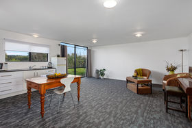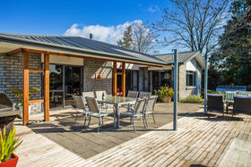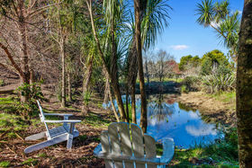 A feature is the adjacent freshly redecorated sleepout, fantastic for extended family or guests. A stand-alone double garage provides further shed space, the land is rolling contour, in pasture, with deer fenced boundaries and there is even a small duck pond!