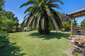 Outside you will find a large backyard, perfect for landscape enthusiasts to add their touch. The garage is a great addition with plenty of outdoor storage. Enjoy the mature trees that fill the yard especially the impressive palm tree you will see out front. The