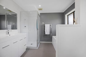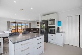 At the heart of the home lies a sleek, modern kitchen, complete with a convenient pantry. The open-plan lounge and dining area flow effortlessly to a sun-drenched conservatory, while the expansive rear deck offers endless possibilities for family enjoyment and entertaining on a grand scale. With its tranquil outlook, the setting evokes the serene charm of countryside living.